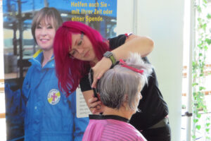 Während Friseurinnen ehrenamtlich für ein professionelles Haarstyling sorgen, kümmert sich eine Kosmetikerin bei den Frauen ums Make-up und die Fingernägel.