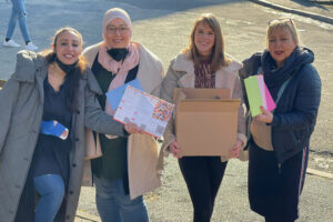 Den Flyer bekamen unter anderem die über hundert Frauen, die in der staatlichen Gemeinschaftsunterkunft für Asylbewerber in der Veitshöchheimerstraße untergebracht sind zur Feier des Tages zugeschickt. Hübsch verpackt mit einer kleinen Überraschung anbei, wurden die Briefe am Vormittag von Mitarbeiterinnen von IN VIA Würzburg und Stadt Würzburg an Karla Deininger, Gewaltschutzkoordinatorin der Regierung von Unterfranken, übergeben.